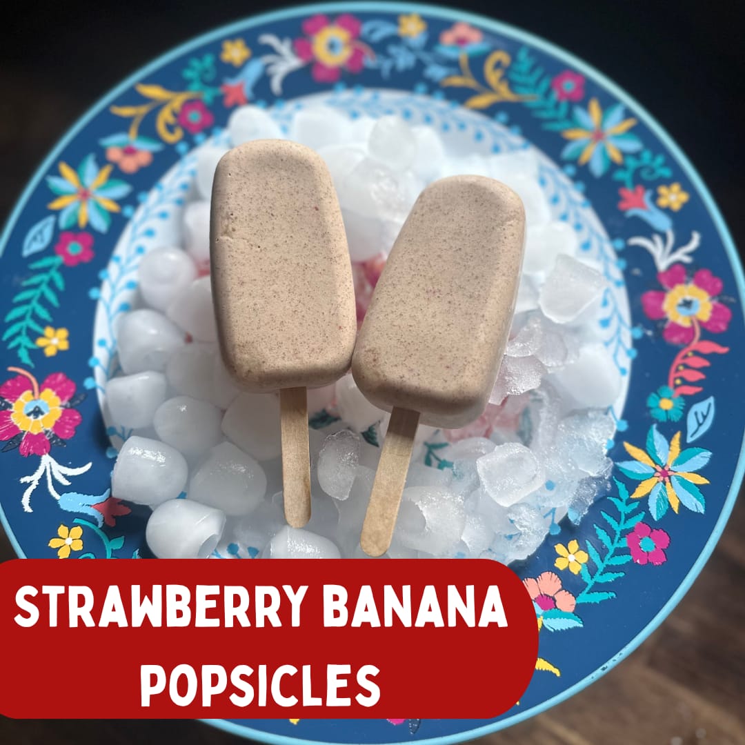 Strawberry Banana Popsicles with Flax Seeds
